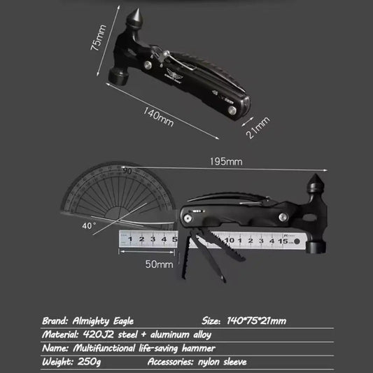 High-Quality Multi-Tool Hammer Hatchet with Knife, Saw, and Mini Claw – Ultimate Car Safety Hand Tool