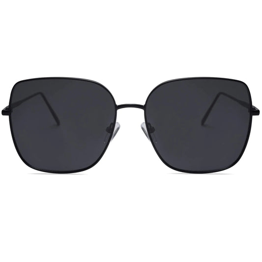SOJOS Trendy Oversized Square Metal Frame Sunglasses for Women Men Flat Mirrored Lens UV Protection Sunglasses SJ1146 Black/Grey