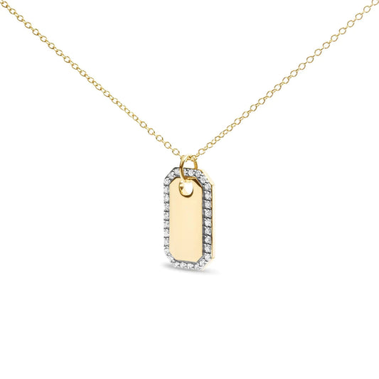 14K Yellow Gold 1/4 Cttw Diamond Halo Octagonal Dog Tag Pendant 18" Necklace (I-J Color, I2-I3 Clarity)