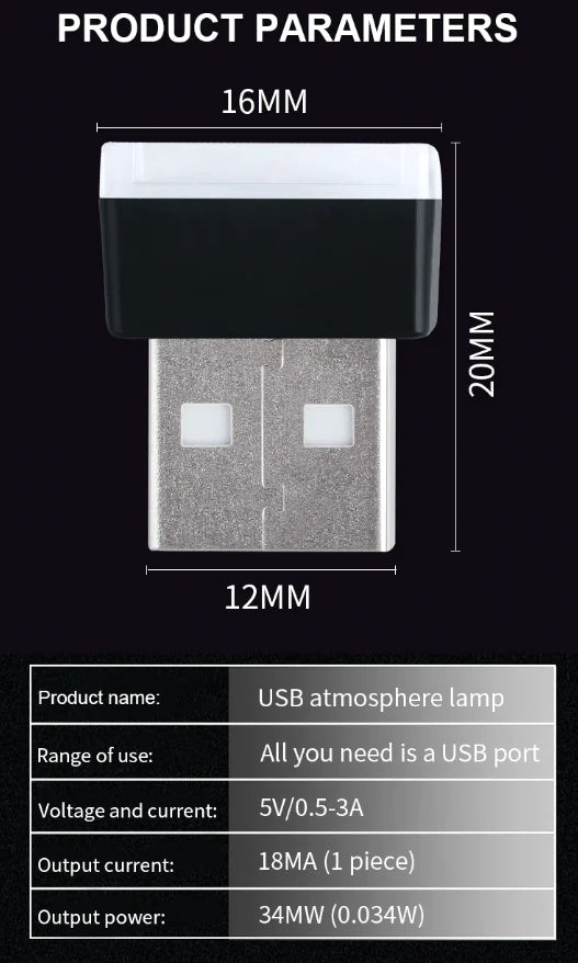 3x Mini Blue LED USB Car Interior Light Neon Atmosphere Ambient Lamp Accessories