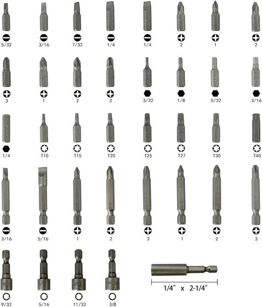 37 Piece Impact Screwdriver Bit Set Nut Driver Torx Phillips Tool Magnetic Drill