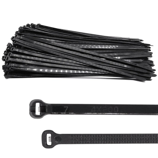 BUXIMN 150pcs Push Mount Zip Ties 8 inch Self Locking Straps Cable Zip Tie with Stainless Steel Metal Tooth Locking Device Heavy Duty Nylon Zip Tie Clips (8" Black)