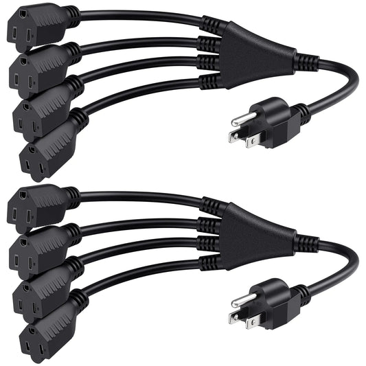 Cable Matters [UL Listed] 2-Pack 4 Outlet Power Splitter Cord (Power Cord Splitter) 1.5 Feet