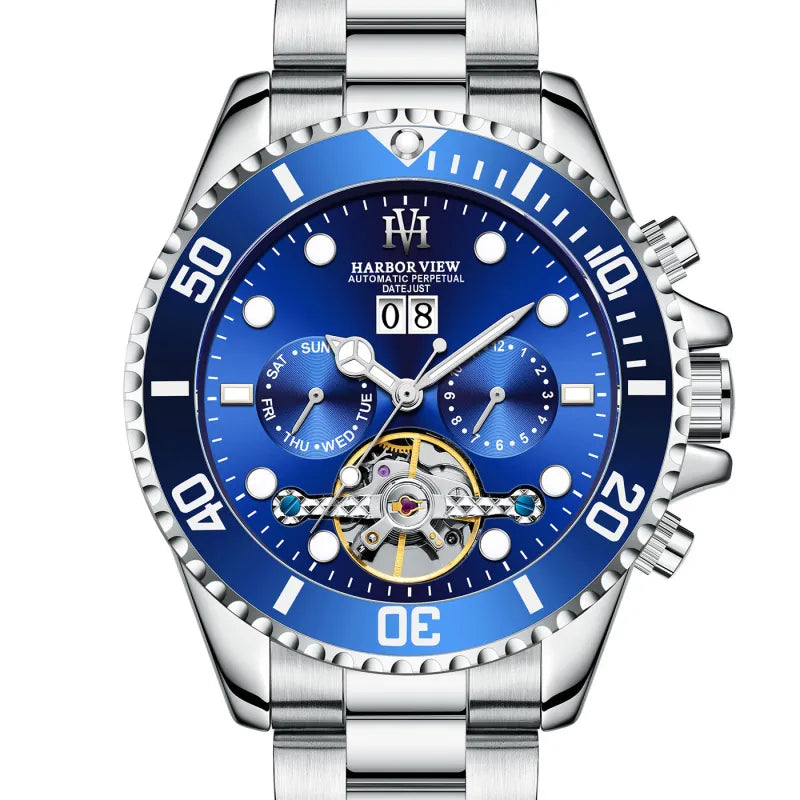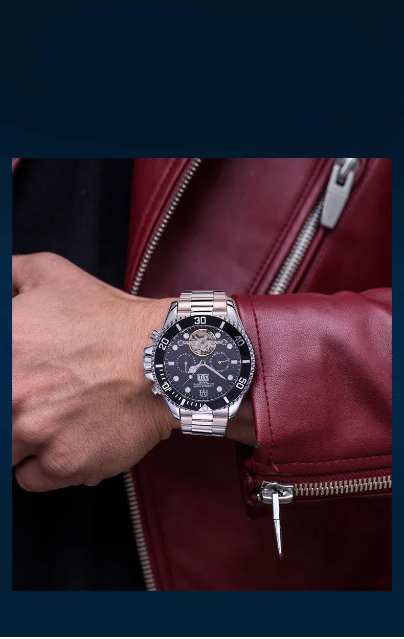 The ARBOR VIEW Tourbillon Green Mechanical Watch combines precision and style, featuring a luminous tourbillon movement, calendar, and 24-hour indication. Ideal for business wear, this watch offers both functionality and elegance.